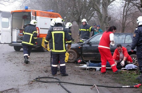 Наложило се спасителна група на противопожарната служба да разреже ламарините на силно намачканата кола, за да извади пострадалите, които са откарани с четири коли на Спешна помощ в русенската болница.