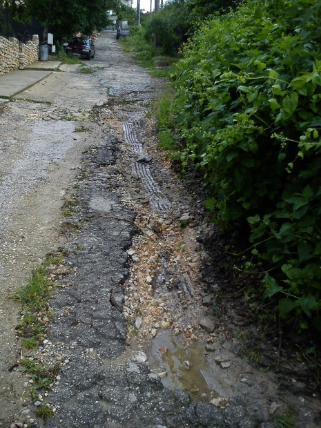Не! Тази улица не е в такова състояние заради поройните дъждове, а просто си е...така.