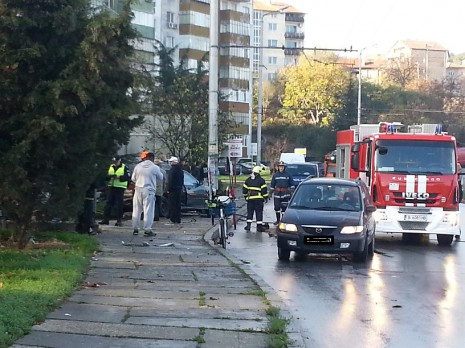 В 08:45 лек автомобил БМВ навлиза с висока скорост от сп. Джанавара, губи управление и се забива в уличен стълб и сп. Калин в кв. Аспарухово. От удaра колата е неузнаваема. Наложи се да я разрежат от пожарната за да изкарат момче на видима възраст около 25 години в много тижко състояние. Откаран е в бърза помощ.