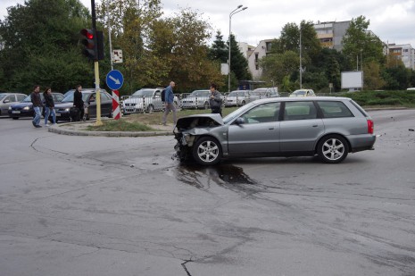 Два автомобила са се блъснали челно. Единият е "Фолксваген" с варненска регистрация, а другият "Ауди" с разградска регистрация.