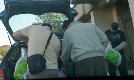 Двамата родители бяха заснети да напускат хотела, нарамили пликчета с хранителни продукти. Те се метнаха на "Ауди" комби и потеглиха в неизвестна посока.