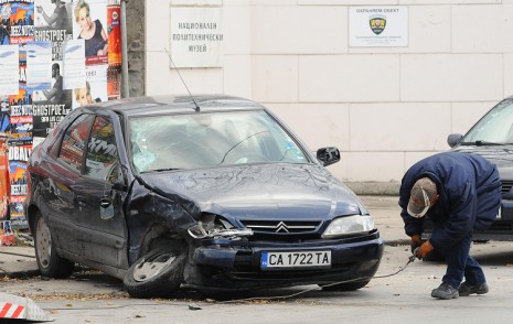Линейка и кола се сблъскаха жестоко на ул. "Опълченска" в София, близо до БИЛЛА. След катастрофата автомобилът на Спешна помощ се е забил в бетонен зид. Ранени са фелдшерът и шофьорът. /Булфото