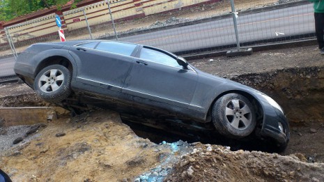 "Mercedes S" класа "паркира" в изкопна яма до Семинарията