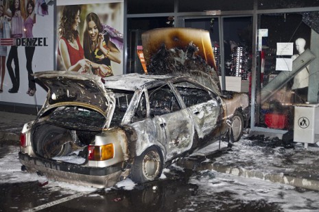 Шофьор на Ауди направи среднощно родео с елемент на пиротехника в столичния квартал "Света Троица", бивш "Фондови жилища". След като по неизвестни засега причини влезнал направо с колата си в магазин "Дензел", ядосан, излезнал от колата, полял я с гориво и я запалил. Автомобилът е бил откраднат от паркинга на блок близо до мястото на инцидента, съобщи собственикът на колата.