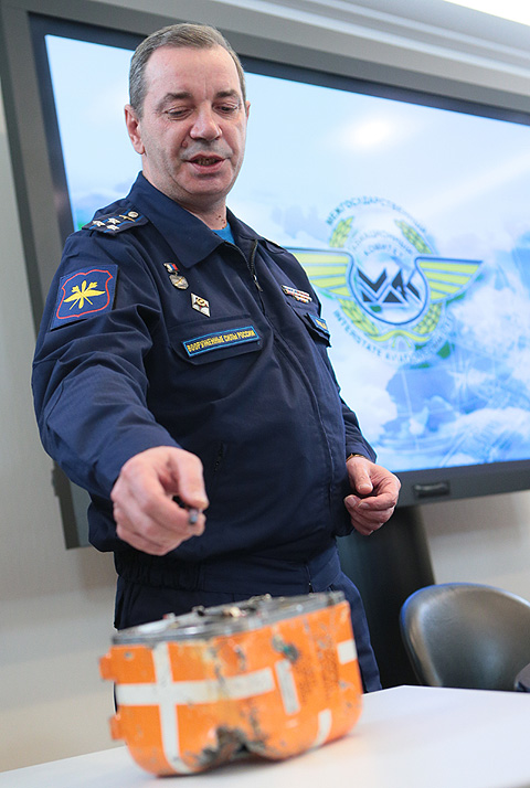 „Полетното записващо устройство обикновено се намира в задната част на самолета, в областта на вертикалните опашни перки, каза Семьонов в Министерството на отбраната на брифинг, посветен на декриптирането на „черната кутия“.