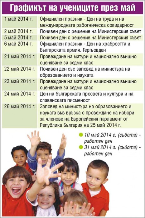 За радост на децата през май се струпват изпити, заради които училищата трябва да се опразват. Има много празници, а на всичкото отгоре и евроизборите са в края на месеца.