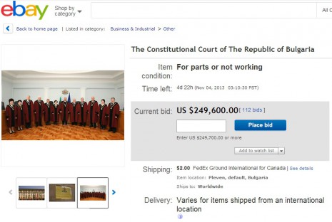 Пуснаха за продажба в Ebay Конституционния съд на България. Цена: $249,600