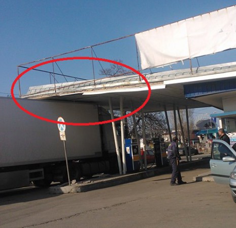 Ако камионът беше с по-лек товар или козирката беше с леко изкривяване със сигурност превозното средство щеше да заседне.