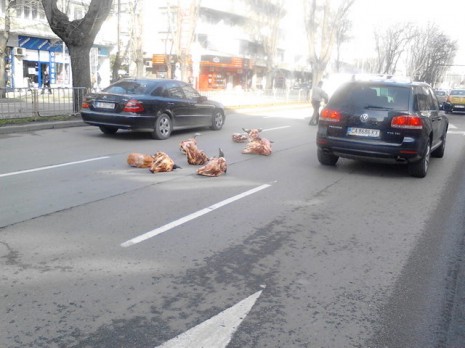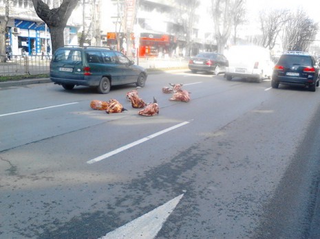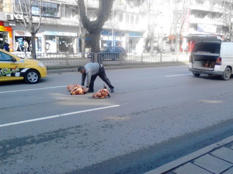 Снимки на деня: Телешки глави се разпиляха по бул. "Осми Приморски полк"