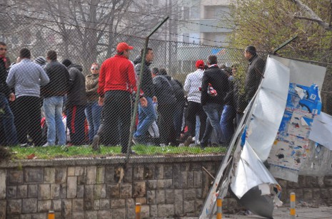В суматохата се получи и лека схватка между униформените и феновете на "червените". Ексцесиите бяха потушени, но по непотвърдена информация за привърженик с разбита от хвърлен камък глава.