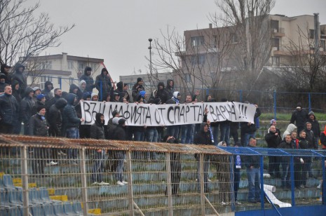 Около 100 души бурно подкрепяха своите любимци след като в началото опънаха огромен транспарант на който пишеше: "Вън мафията от Спартак". След последния съдийски сигнал около 10-ина ултраси прескочиха оградата и нахлуха на терена, за да прегърнат и разцелуват спартаклии.