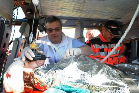 Демонстрация на операция по въздушно транспортиране на пациент от МБАЛ - Бургас до друго лечебно заведение демонстрираха с авиолинейка в морския град.