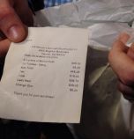Първият клиент, купил законно марихуана в Колорадо. Отдолу е първата издадена касова бележка - за $59,74.