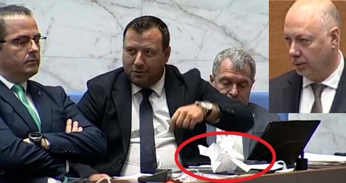Докато премиерът отговаряше, камерите в пленарната зала показаха депутатът от „Възраждане” Петър Петров да си прави хартиено самолетче и да го развява демонстративно пред Желязков от първия ред. Премиерът не реагира на провокацията.