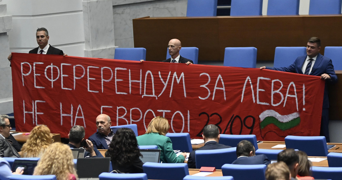 „Нестандартна провокация накара всички отново да заговорят за референдума за лева. Днес парламентарната група на „Възраждане“ внесе като задължителна точка в дневния ред референдума на президента за запазване на българския лев. Президентството не успя да организира кой да прочете мотивите на предложението, а парламентът отхвърли предложението на президента за провеждане на национален референдум. В дългите почивки на изчакване на техен представител, по идея на „Движение 23“, с които „Възраждане“ подписа партньорство преди няколко месеца, беше проведена артистична провокация.“
