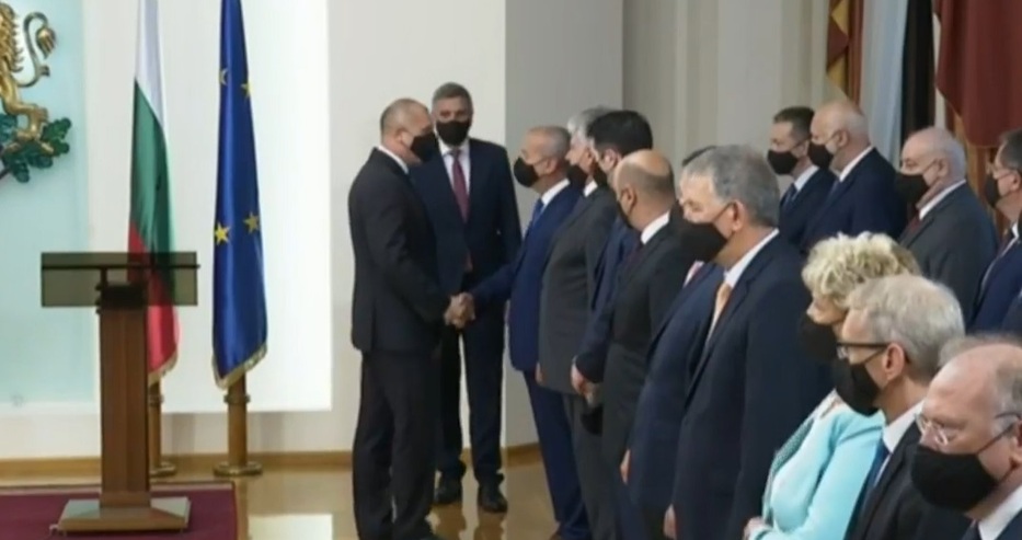 "Заклевам се в името на Република България да спазвам канституцията и законите на страната, и във всичките си действия да се ръководя от интересите на народа, заклех се." - повториха министрите, след което президентът се ръкува с всеки един и си направиха обща снимка.