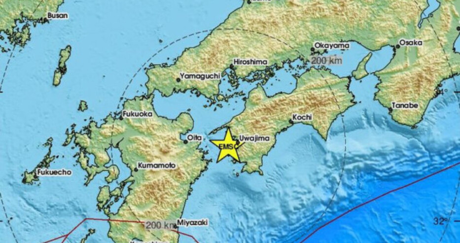 Епицентърът на земетресението е в протока, който разделя островите Кюшу и Шикоку, на около 18 км западно от Уваджима. Трусът е с дълбочина около 25 км