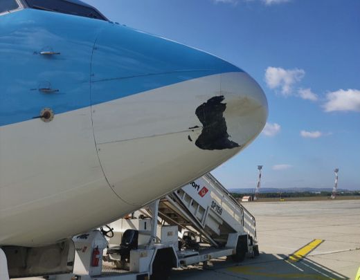 Щъркел се удари в самолет, излетял от Бургас (снимка)