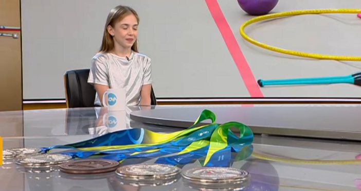 Най-добрата българска гимнастичка Стилияна Николова показа петте медала от световното в студиото на Нова телевизия. Тя призна, че е доста уморена, но сега следват 2-3 седмици, в която програмата ѝ максимум е да си почива - без тренировки, без зала, без уреди.