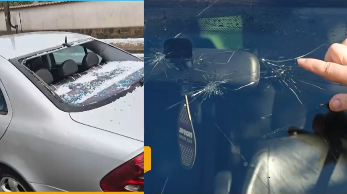 Пробити и пропаднали покриви, строшени стъкла на автомобили и къщи, унищожени до 70% лозя - такава е картината в село Тополово, което беше поразено от едра градушка. Жители на селото разказаха, че имат рани от падащите ледени парчета, а материалните щети - огромни.