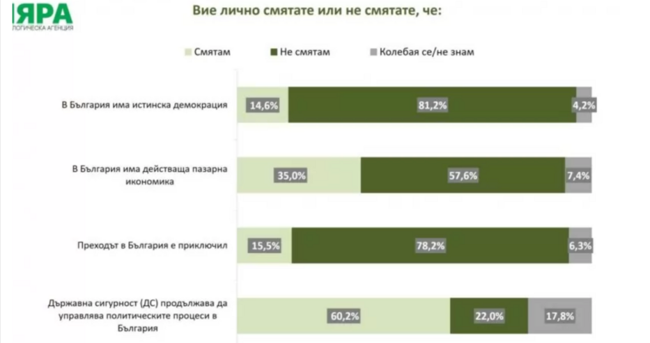 81 % от българите смятат, че няма истинска демокрация в България, а страната се управлява от ДС