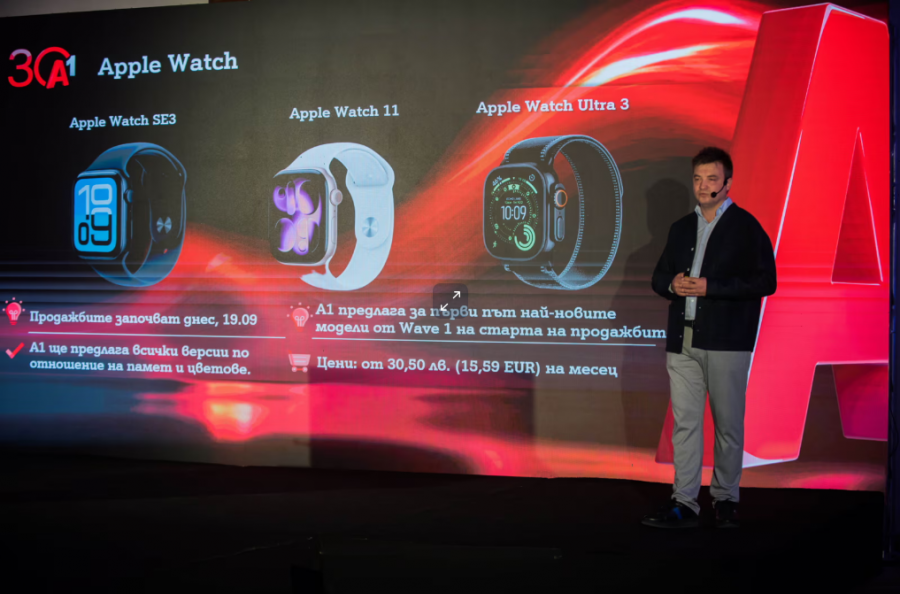 Александър Колев, мениджър „Управление на продуктово портфолио и аксесоари“, представи данни за пазара на мобилни устройства и аксесоари в България. Той демонстрира най-новата серия смартфони на Apple iPhone 17, чиито официални продажби стартираха днес. Той подчерта, че най-нетърпеливите почитатели на марката могат да ги закупят още през първия уикенд в магазините на А1 в моловете в София, Пловдив, Варна, Бургас и Велико Търново.