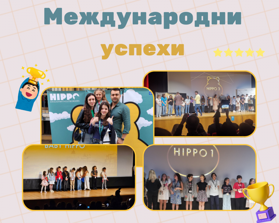 Гордеем се, че вече три години наши ученици се класират за европейския кръг на международната олимпиада HIPPO в Лидо ди Йезоло, Венеция, и се представят изключително успешно сред най-добрите в Европа в различни категории. Това е доказателство за високото ниво на подготовка и отдаденост както на децата, така и на нашия екип.