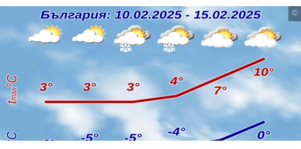 През първите дни от новата седмица ще остане сравнително студено за периода. Преобладаващите минимални температури ще са между минус 8° и минус 3°, а максималните - между 1° и 6°.