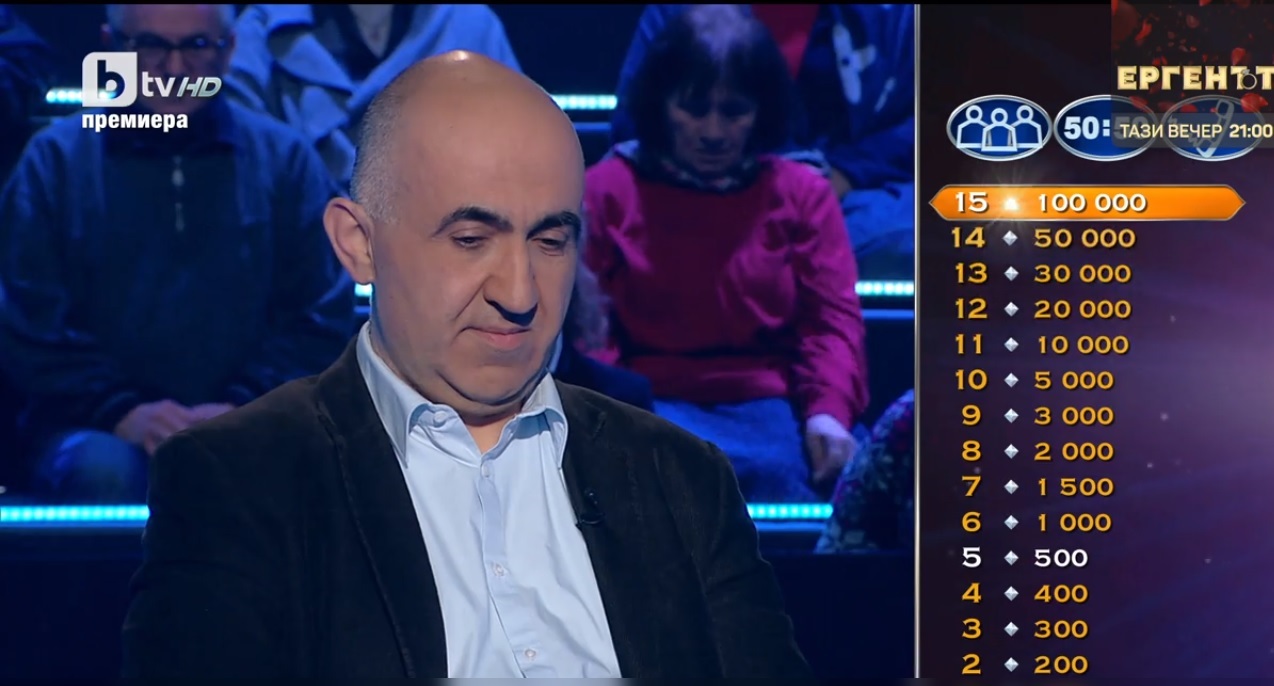 Направи впечатление, че участникът отговаря доста бързо на въпросите. И ако това е нормално да се отнася за първите пет питания за сигурната сума от 500 лева, то той продължи с този темп и на следващите.