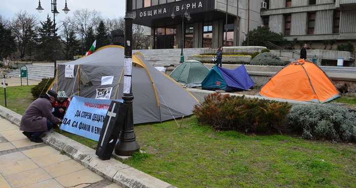 Протестиращите варненци, които разпънаха палатки пред общината като знак на недоволство, че общинския съвет не подава оставка, са се натъкнали на неочаквана съпротива срещу действията си. Още през първата вечер на престоя си, те се оказали наобиколени от бездомни кучета. Така и не станало ясно дали четириногите са поискали да се скрият от студа или са решили да бранят територия, която смятат за своя. В крайна сметка с известна доза сила, протестиращите прогонили кучетата, разказа Людмил Стойчев , един от обитателите на палатките пред общината. Той засега не участва в гладната стачка на другия постоянен обитател на лагера, Младен Живков. Последният започна тази форма на протест в петък вечерта, след като до края на работния ден никой от варненските общинари и съветници не подаде оставка.