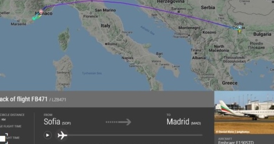 Според информация на сайта „ФлайтРадар24“, български самолет е кацнал аварийно в Ница днес. "Ембраер" на „Бългерия Еър“ е излетял в 13:27 ч. от София в посока