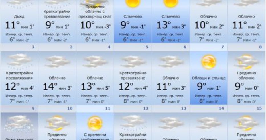 В дългосрочната си прогноза за последната седмица на февруари и първите две на март специализираният метеосайт accuweather.com сочи (виж таблицата за района на София) трайно лабилизиране на времето у нас със сравнително по-ниски максимални и минимални, падащи под нулата, температури. По-чести ще са и преваляванията. Като на няколко пъти може да прехвърчи сняг. Това захлаждане, съпроводено от повишена влажност, създава условия за нарастване на простудните заболявания и като нищо може ще ни изкара през носа февруарската пролет.