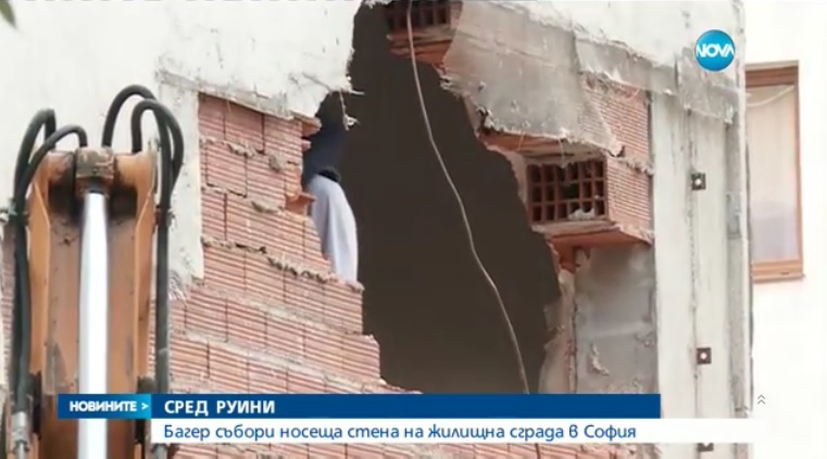 Багер пропадна и направи дупка в жилищна сграда в София