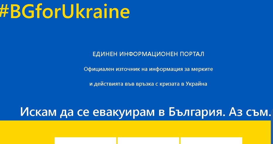 Българското правителство откри единен информационен портал в помощ на напускащите Украйна. В сайта, който се намира на следния адрес: https://gov.bg/bg/ukraine, е поместена пълна информация за изискванията на граничния контрол при влизането в Република България. Посочени са и указания за необходимите документи за самоличност.