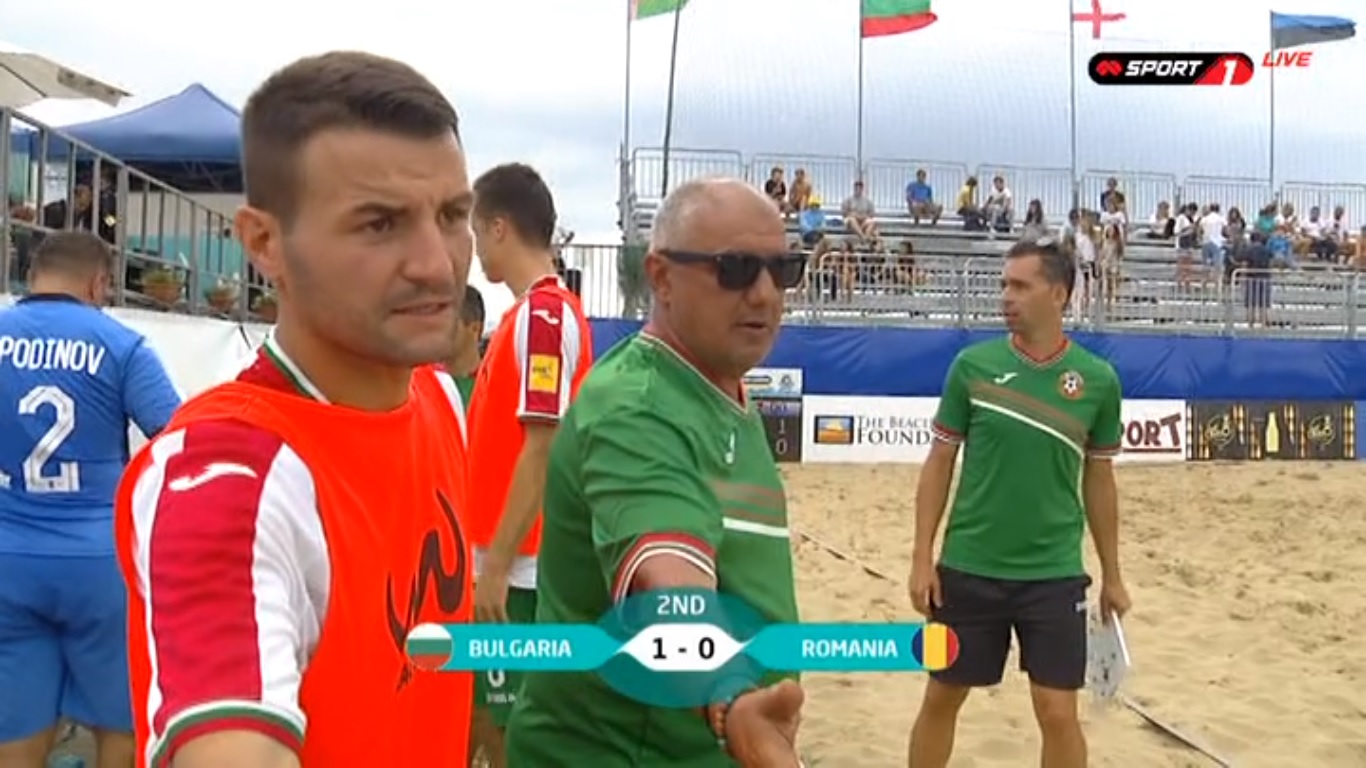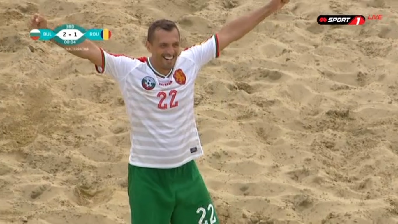 Националният отбор на България по плажен футбол записа първата си победа на финалите в Дивизия "Б" на Евролигата в Терачина, Италия. След като нямаше късмет в мачовете с Естония (2:4) и Гърция (3:4), представителнта ни гарнитура днес удари Румъния с 3:1. С този успех плажните ни "лъвове" завършват трети в своята група "А" и ще играят утре 10.45 ч. за пето/шесто място срещу Англия. Българите имаха превъзходство през цялата среща със северните ни съседи и освен трите гола удариха и три греди. Тимът ни в този двубой бе без Калоян Цветков, който бе наказан заради натрупани два жълти картона.