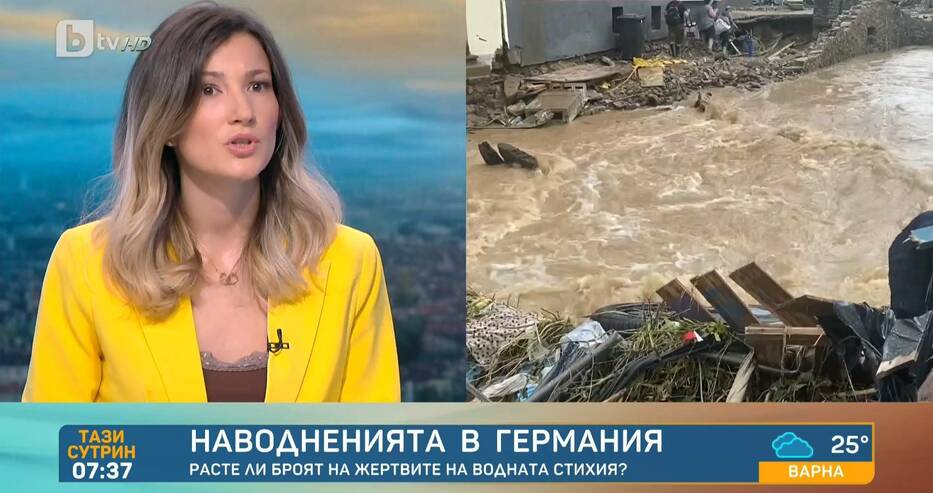"Ситуацията в Германия продължава да е трагична. Спасителните екипи все още не могат да стигнат до някои населени места, расте броят на жертвите", обясни за БТВ Натали Пашева, която до скоро бе в засегнатата страна.