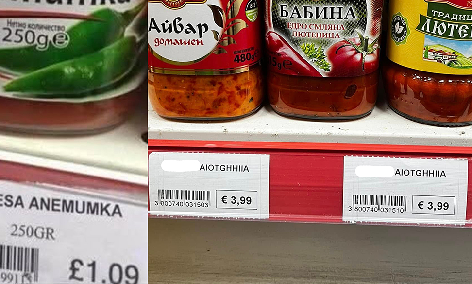 Така българи, от Група на правописните ченгета във фейсбук, коментират снимки на превод на лютеница, която се предлага в магазин в Нидерландия.