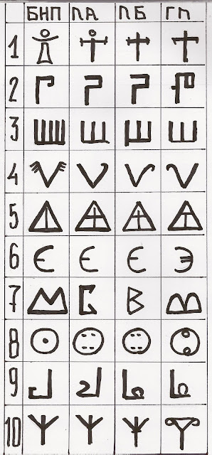 Сравнение на буквите от Ситовския надпис с букви от други азбуки - по Баюн и Орел