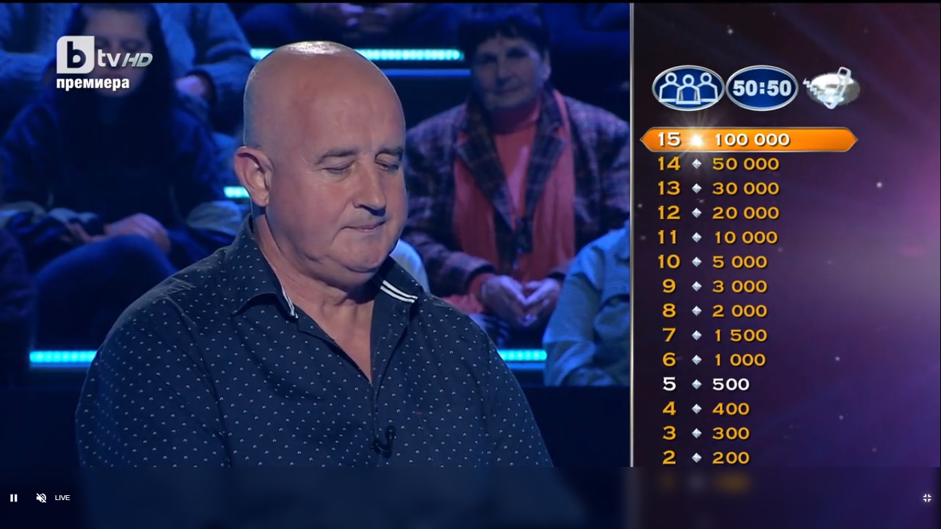 Преди да бъде зададен въпроса за 2000 лева сирената в студиото изсвири и така Каменов ще продължи участието си утре.