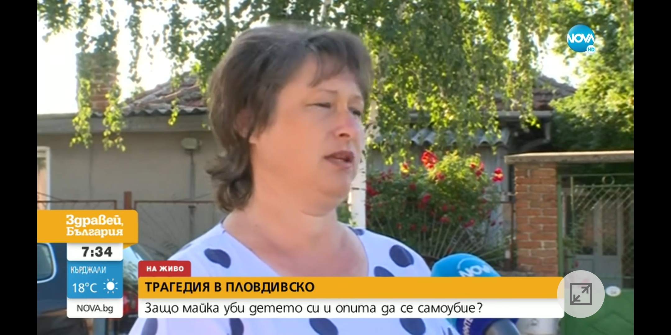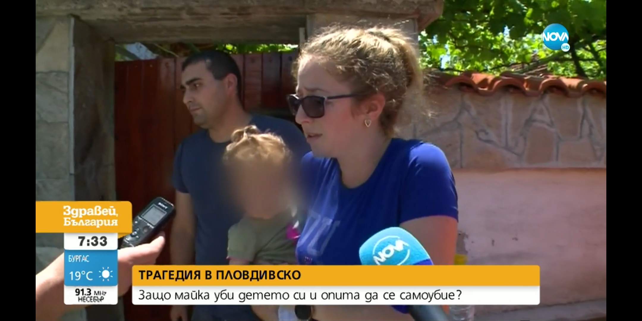"Вчера около 9 часа се е разиграла трагедията, майката е облякла момиченцето в пазнична рокля, подготвила го е за вчерашния първи юни, когато по неясни причини е взела кухненския нож, намушкала е детето над 10 пъти, след което е опитала да се самоубие. Хората в селото са шокирани от случилото се", припомня репортер на мястото.