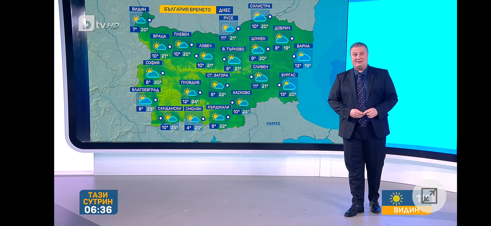 "Тази сутрин температурите в страната са между 8 и 15 градуса, дори до 19 в Пловдив. Очакваме да е предимно слънчево, с временни увеличения на облачността. На места в планините ще превали слаб дъжд." - издаде прогнозата Борислав Лазаров по БТВ.