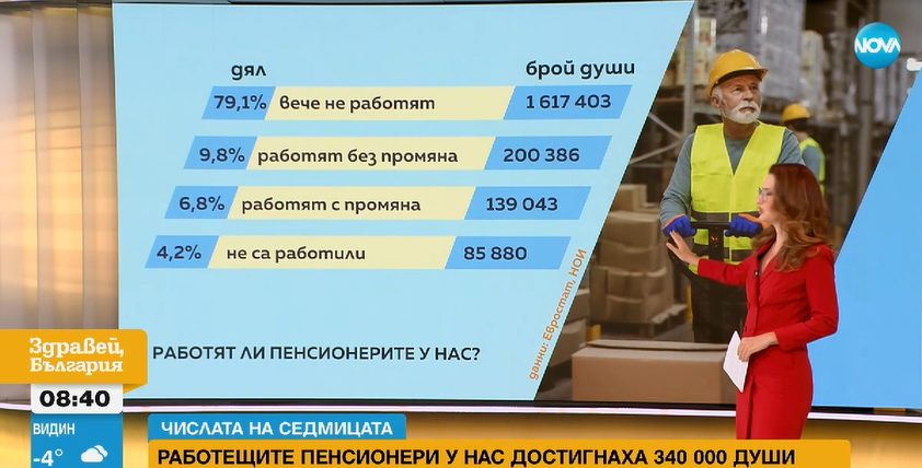 Данните на Евростат и НОИ показват, че по-голямата част от пенсионираните по старост в България си почиват. Това са над 1 милион и 600 000 българи.
