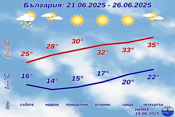 Седмична прогноза за България от 21.06.2025 до 26.06.2025