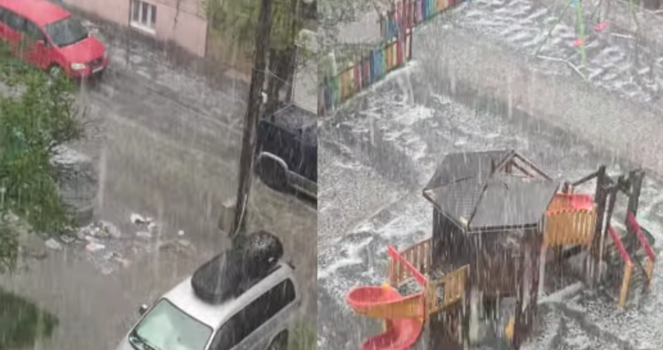 Тя започна в ранния следобед и очевидци публикуваха клипове в социалните мрежи на градушка с размера на орех.