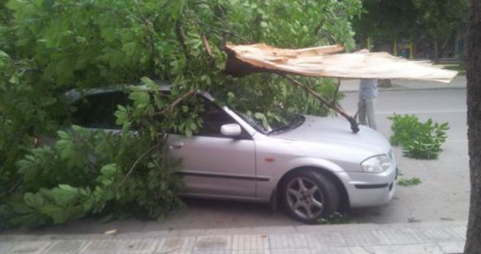Инцидентът е станал на улица „Братя Бъкстон”, но няма пострадали хора. Друг лек автомобил също има нанесени леки материални щети, след като близо до него пада дърво, което счупва страничното му огледало.