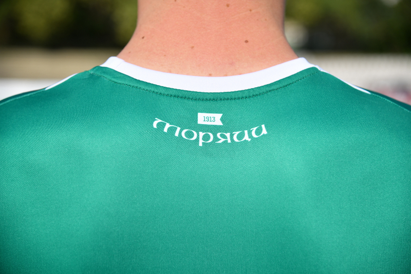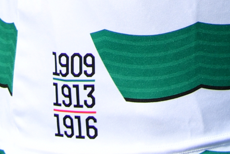 Титулярният екип е в традиционното зелено-бяло хоризонтално райе, но липсват черните мотиви, които присъстваха в досегашната фланелка.
