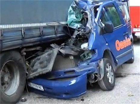 Микробусът, който е на частната благоевградска туристическа фирма “Оазис А”, се е ударил в задната част на спрял извън пътя тежкотоварен автомобил. В него са били пътници, връщащи се от почивка в Гърция.