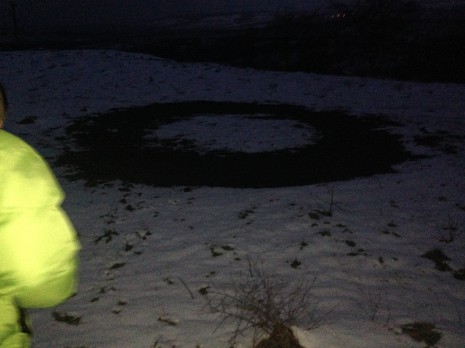 "Снощи към 19:00ч. забелязохме странен кръг в полето покрито със сняг. Наоколо нямаше следи от стъпки, автомобил или АТВ от каквото първоначално си помислихме, че е следата. Огледахме добре мястото и наистина се уверихме, че няма никакви следи. Нямаше и снежинка сняг в образувания кръг", посочи той
