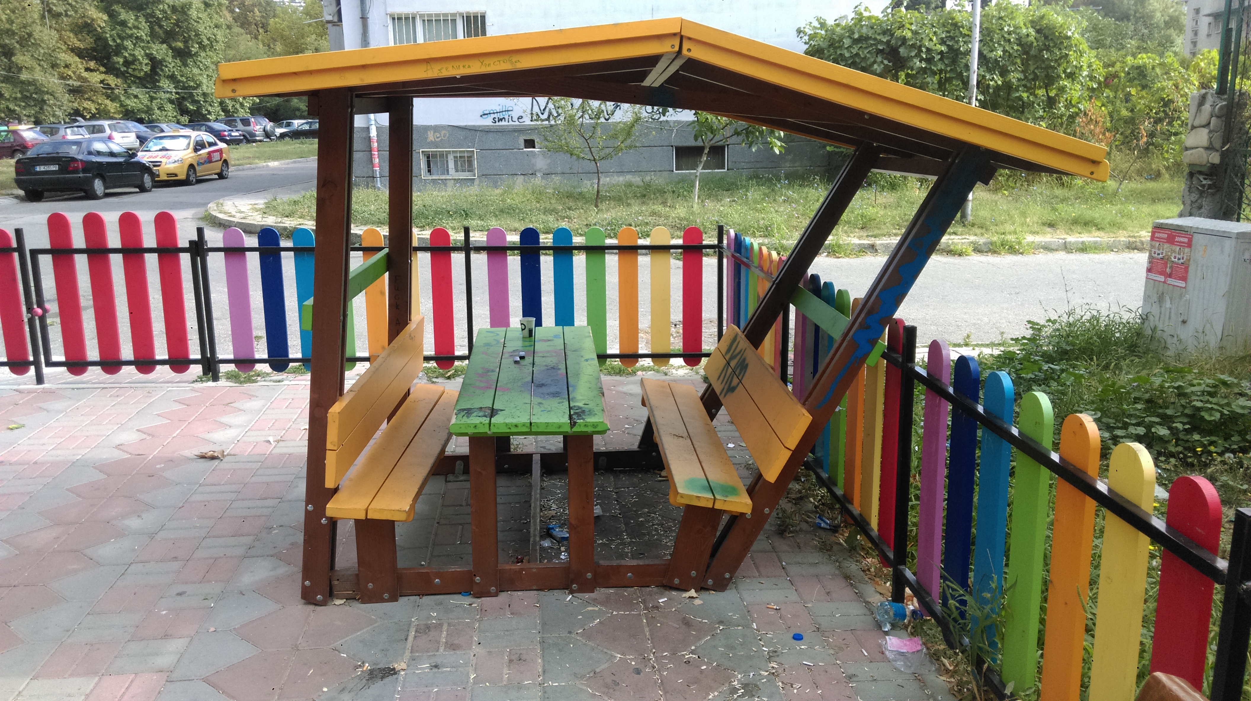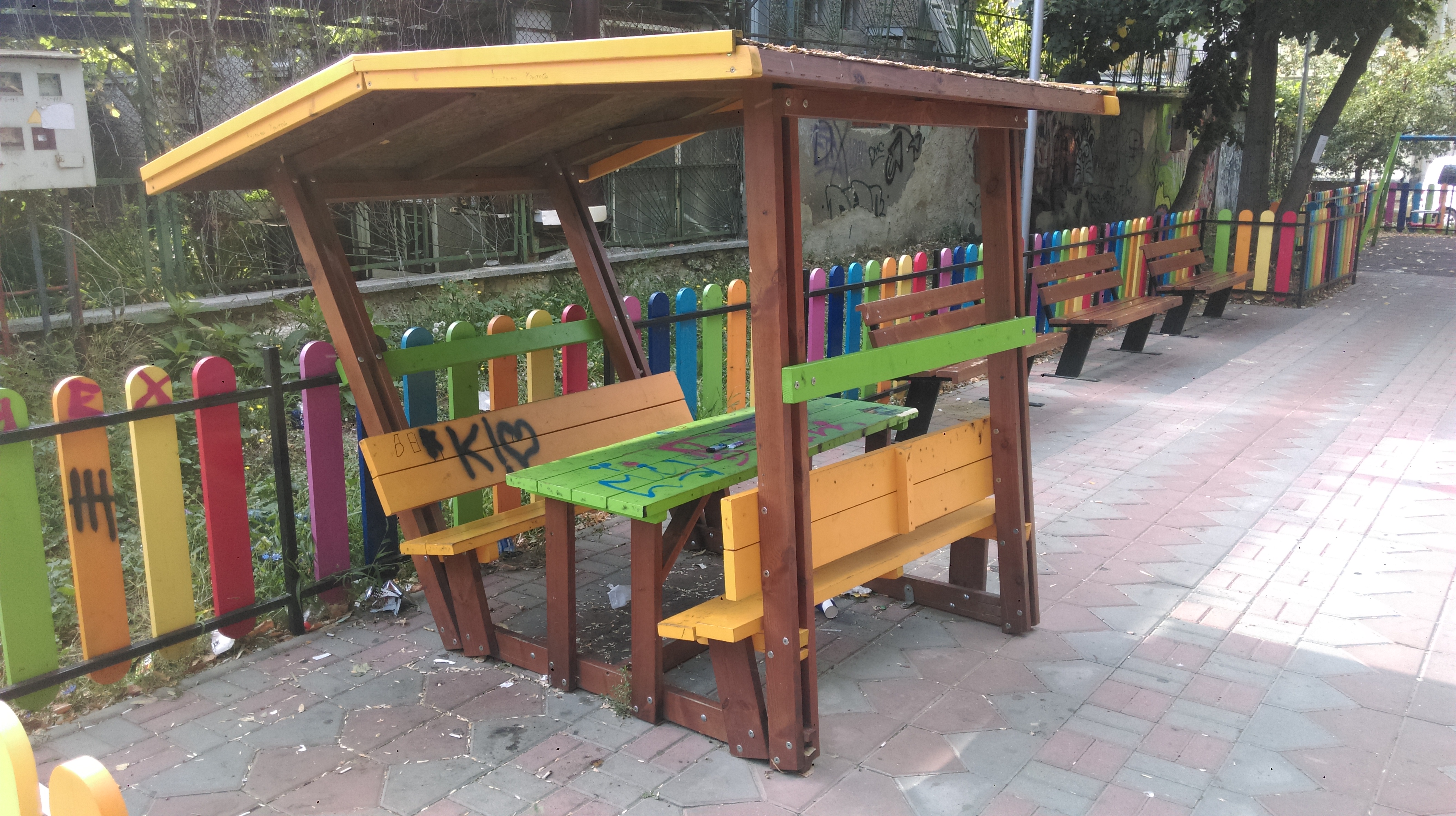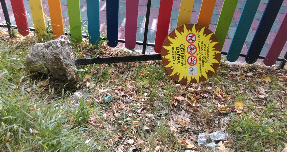 „Така изглежда детската площадка в началото на ул. „Димитър Икономов” в кв. „Левски” две години след откриването й! Група тийнейджъри си я харесаха за всекидневни сбирки и резултатът е на лице. Не помогнаха и забележките на живущите в района. Напротив, едната табела, указваща за деца на каква възраст е направена площадката, е изкъртена, а другата - замацана! Силно се надяваме властимащите да ни помогнат да опазим площадката!”