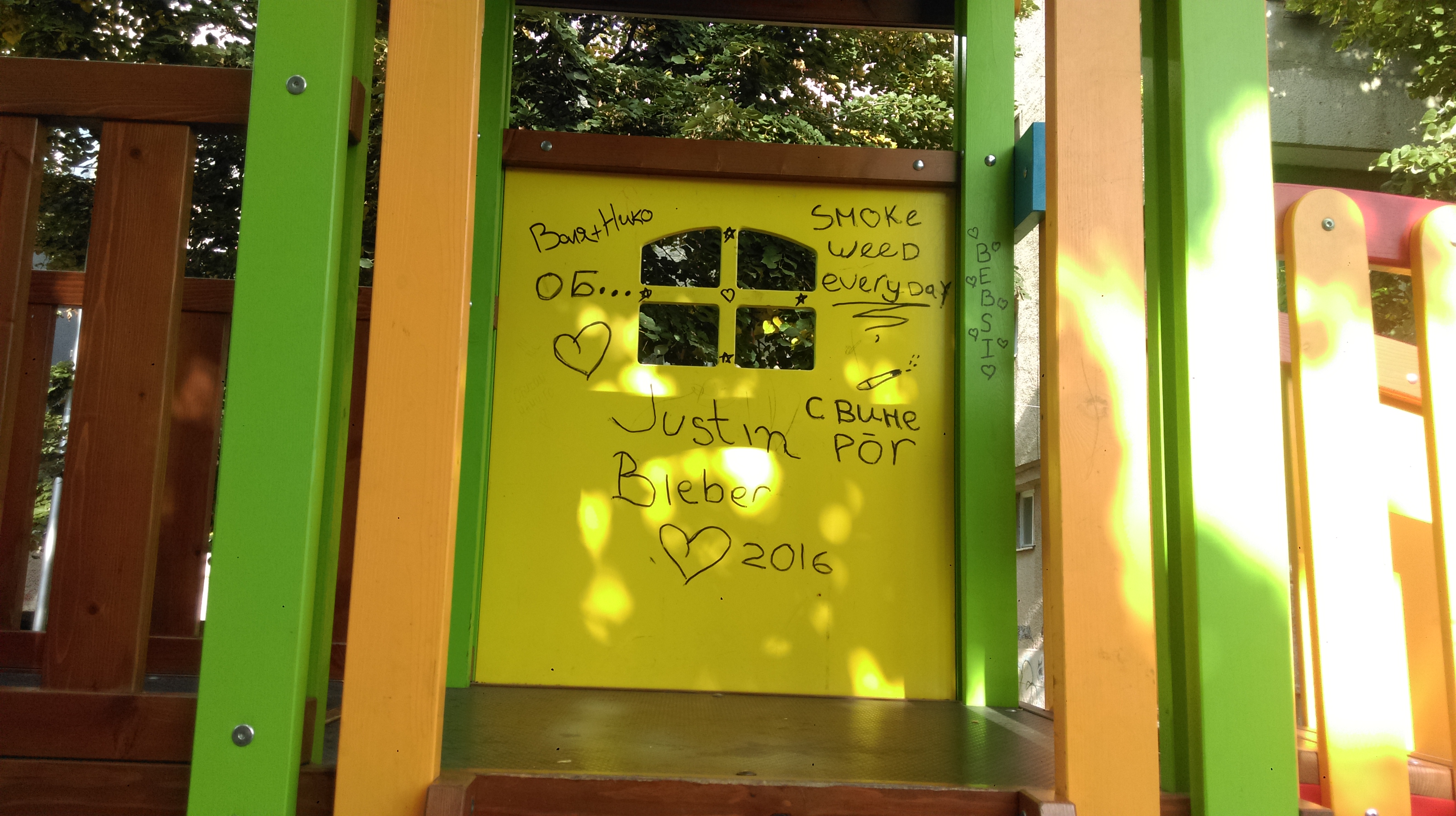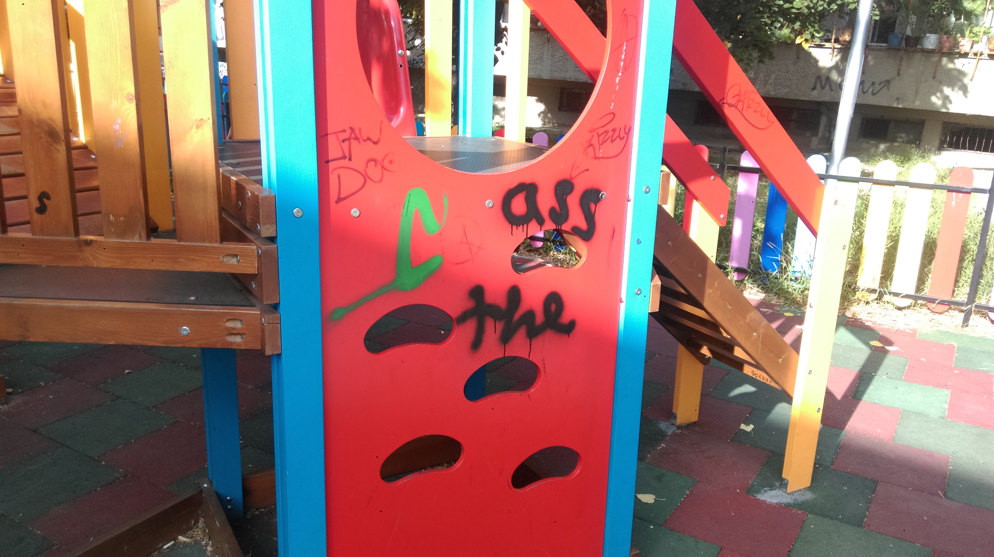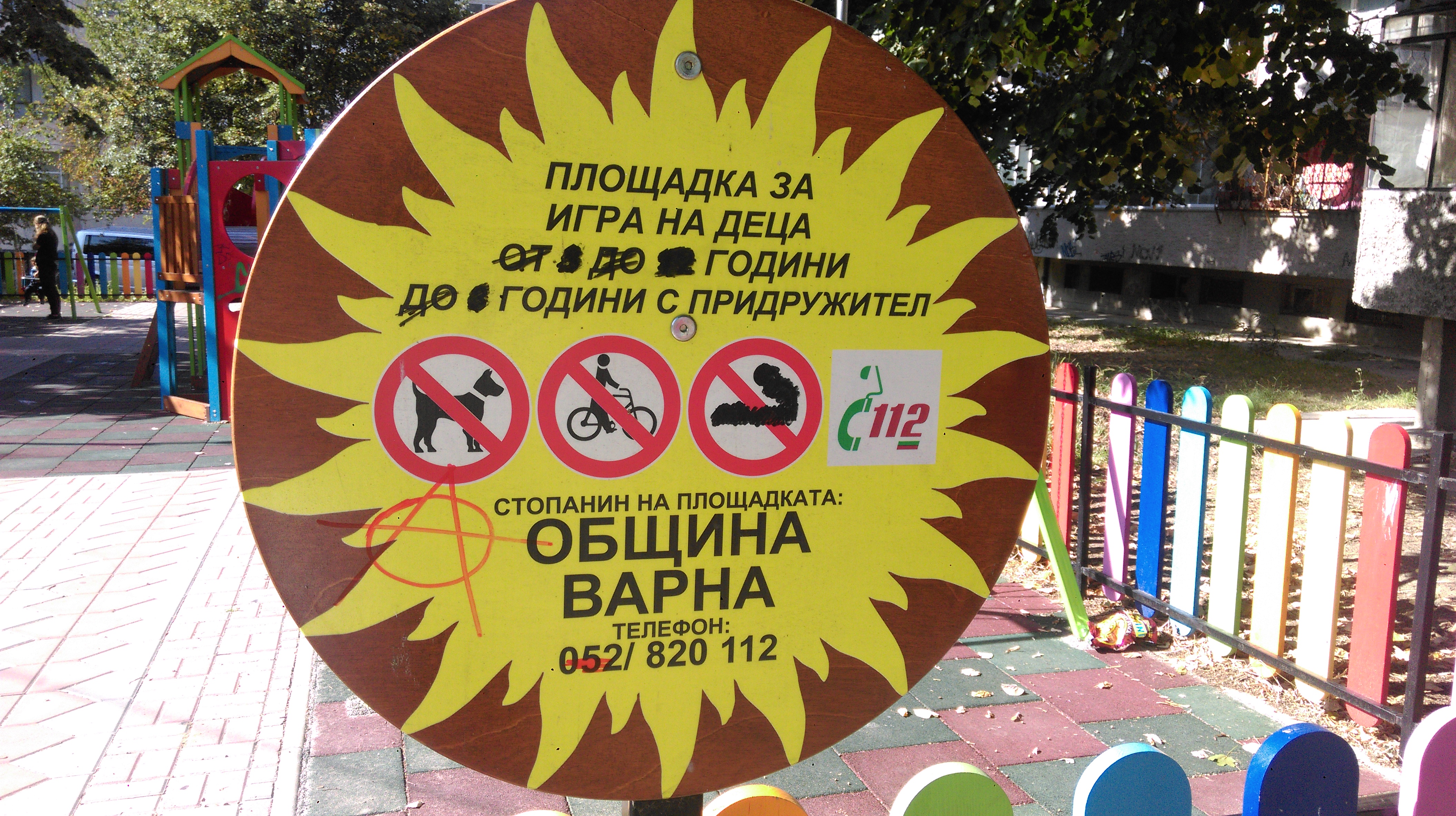Читател ни писа, за да изрази възмущението си от действията на тийнейджъри, които са омаскарили детска площадка на улица в квартал „Левски” във Варна.